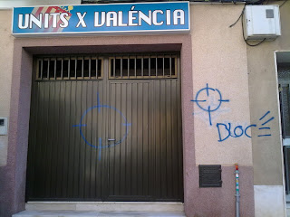 Fa pocs dies ha ocorregut a Almàssera. Les ordes feixistes han passat per este poble tranquil de l’Horta Nord. Un poble valencià. Però, esta vegada l’agressió ha sigut a la Seu d’Units per València i l’atac una pintada en la seua façana on, com es pot apreciar, han dibuixat el símbol d’una “diana” i la paraula Bloc. Desconeixem si els autors de la bretolada volien intimidar a algú, però ja podem dir-los que no ha sigut així i que mai ho aconseguiran: ni en un ni en l’altre partit valencianista.